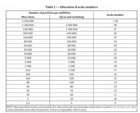 ISO 4406機油清潔度標準